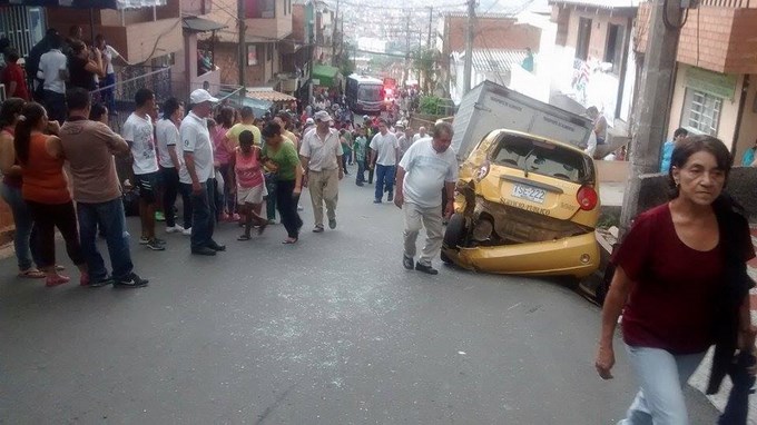 El incidente se produjo, al parecer, cuando el conductor del camión se quedó sin frenos y en una accidentada maniobra se llevó por delante a varias personas que a esa hora se encontraban en la calle, aparatosamente se llevó por delante a los conductores de la moto y al taxi.
