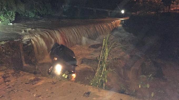 En medio de la creciente de la noche, la camioneta se salvó de ser arrastrada por la corriente gracias a unas piedras de gran tamaño que la recibieron y la hicieron quedar atascada en el lugar.
