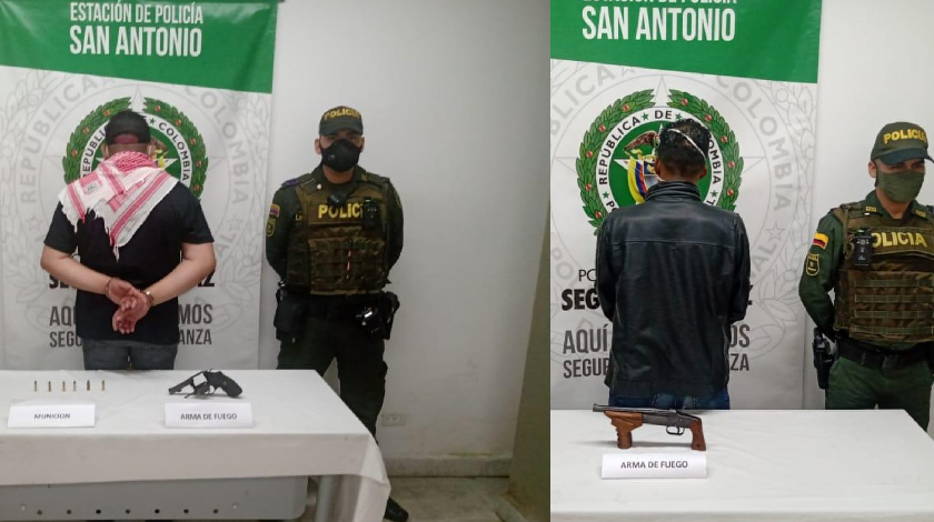 La Policía Metropolitana del Valle de Aburrá capturó a dos personas quienes portaban consigo armas sin salvoconducto en el corregimiento de San Antonio de Prado.