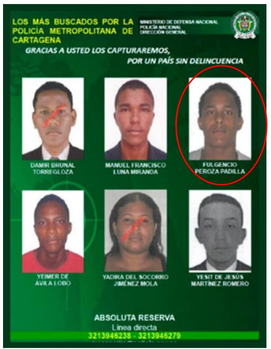 Alias “Fulgencio”, de 29 años de edad, quien llevaría aproximadamente cinco en la organización criminal, se estaría desempeñando como sicario y jefe financiero, con injerencia en los municipios de la zona costanera y Lorica, en el departamento de Córdoba, así como en la ciudad de Cartagena, en Bolívar. Además, es sindicado del recaudo de dinero, producto de extorsiones y narcotráfico.