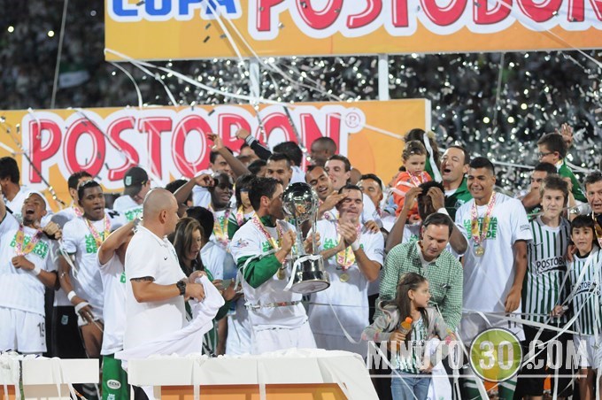 Minuto30.com .- Ante más de 44 mil personas, que llenaron el Estadio Atanasio Girardot, este domingo 17 de noviembre Nacional ganó la Copa Postobon a uno de sus eternos rivales, Millonarios; el trofeo número 20 para la historia del equipo verde de la montaña se convierte además en el bicampeonato de evento de fútbol colombiano, en el que se enfrentan los equipos de los torneos A y B de Colombia.