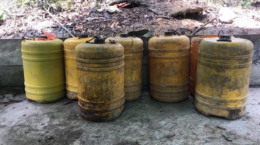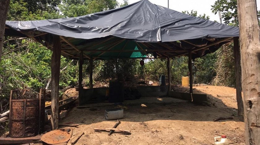 Sobre la estructura ilegal destruida por los uniformados, se detalló que tenía bases en madera, sin paredes, techo en plástico color negro, piso en tierra y en su interior había canecas con alcaloide.