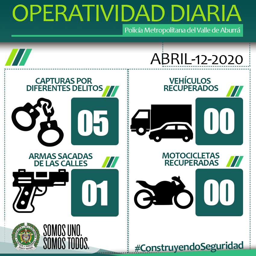La Policía Metropolitana del Valle de Aburrá dio a conocer los resultados operacionales en las últimas horas en el Área Metropolitana.