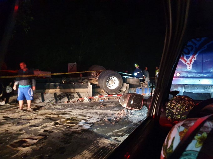 Exactamente el accidente de tránsito ocurrió a unos 500 metros antes de la entrada al municipio. Al parecer, un camión de carga que venía en dirección Medellín-Bogotá perdió el control en una curva, volcando y dejando dos víctimas mortales. Las autoridades dieron a conocer la pérdida total del camión.