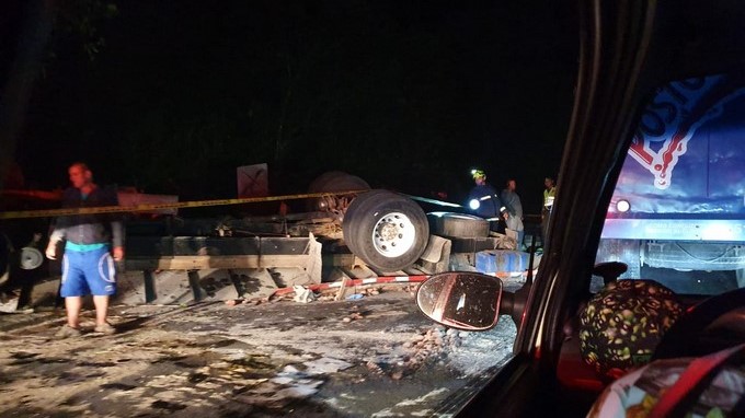 Exactamente el accidente de tránsito ocurrió a unos 500 metros antes de la entrada al municipio. Al parecer, un camión de carga que venía en dirección Medellín-Bogotá perdió el control en una curva, volcando y dejando dos víctimas mortales. Las autoridades dieron a conocer la pérdida total del camión.
