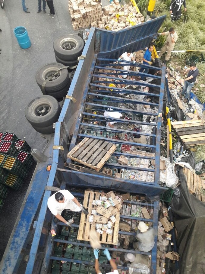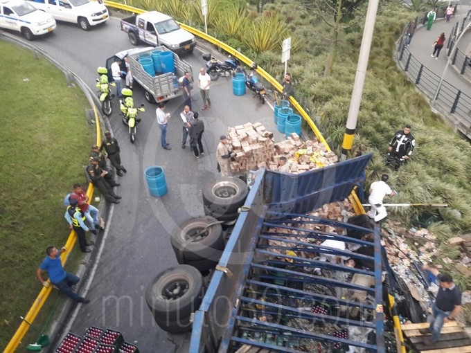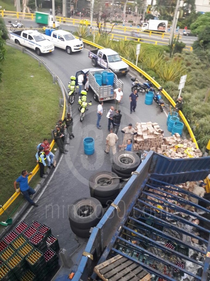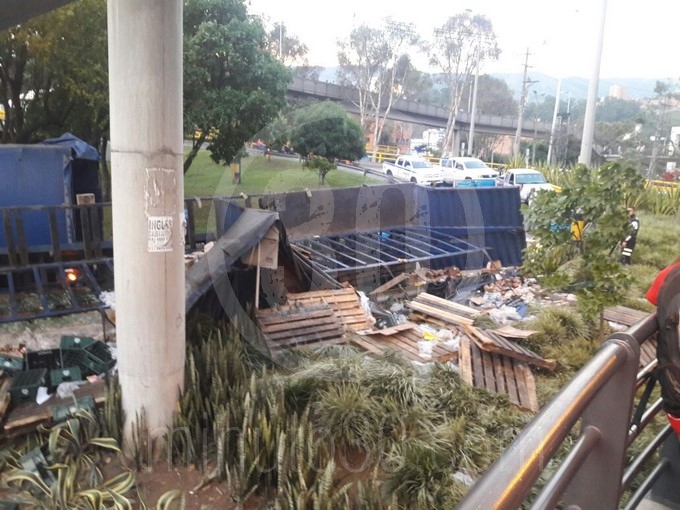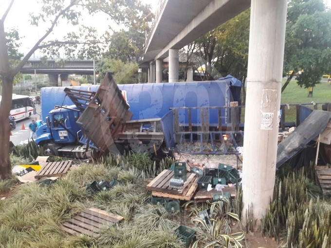 Minuto30.com- Sobre la 1:30 de la tarde de este viernes 9 de marzo un camión de una reconocida marca de gaseosas se volcó en la calle 30, cerca de la estación Industriales del Metro.