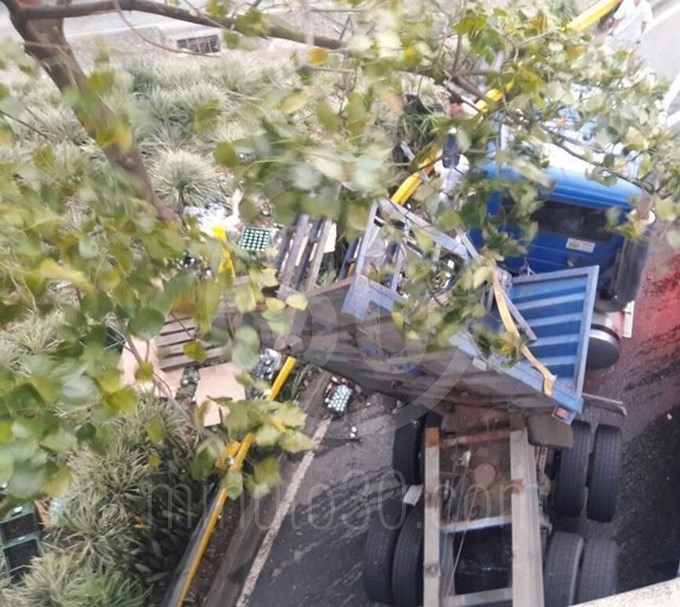 Hasta el momento se desconocen las causas exactas del accidente, pero el camión, al parecer, estaría bastante cargado de mercancía.