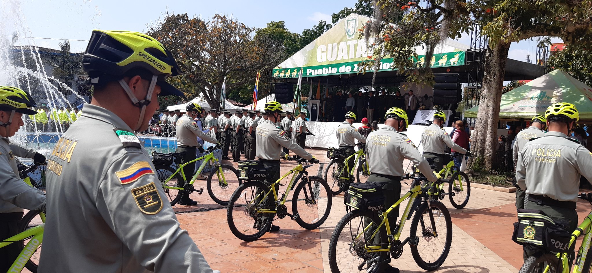 Desde el parque principal del municipio de @Guatape_Ant estamos realizando el lanzamiento de el primer estación de Policía turística de Colombia. #SomosUnoSomosTodos pic.twitter.com/Jtf7HLQBaK