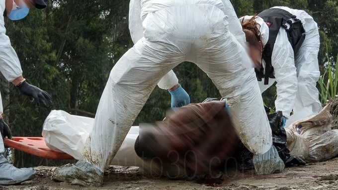 En ese instante, los uniformado descubren que en el mismo sitio, dentro de un barranco de unos 20 metros de profundidad, habían otros dos cuerpos totalmente ’embolsados’.