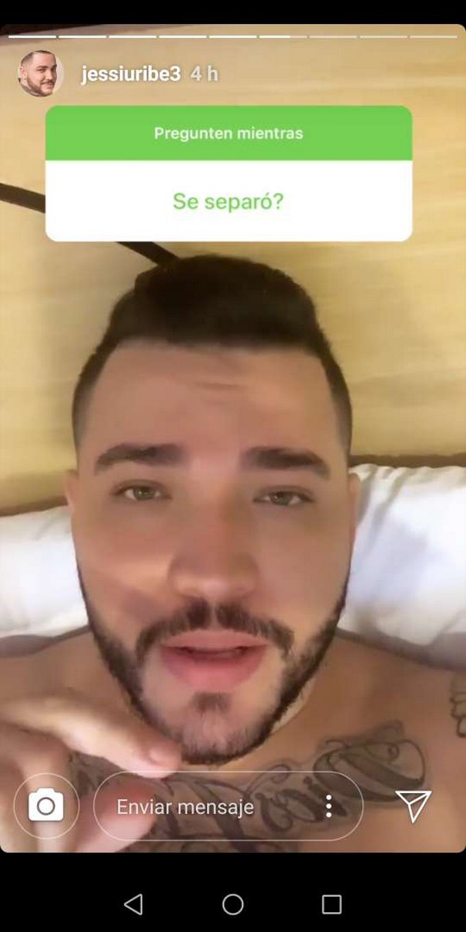 El cantante de música popular Jessi Uribe activó las preguntas en su estado de Instagram el fin de semana pasado en la cual le preguntaron varias veces si se había separado de su esposa Sandra Barrios, aunque no salió de su boca dio ‘luz verde’ sobre su separación.