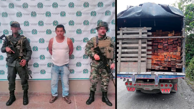 La captura de este sujeto se efectuó en el municipio de Unión Panamericana, en Chocó, donde el sujeto fue detenido en un camión para hacer la revisión correspondiente del material que transportaba y no demostró su legalidad.