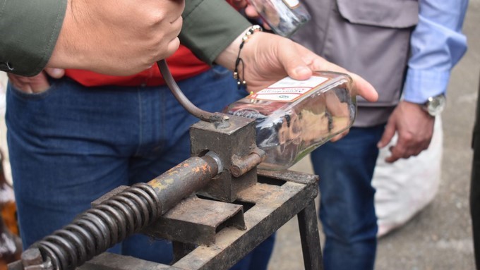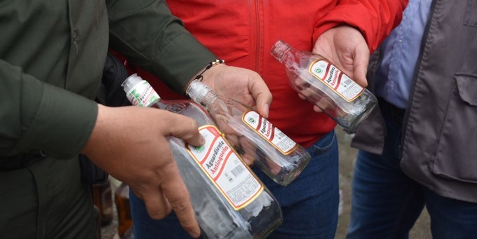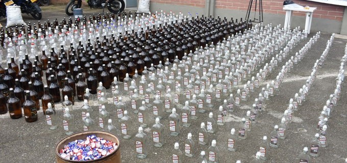 Según el reporte oficial, cerca de 1500 botellas de aguardiente y ron de diferentes presentaciones (garrafa, litro, botella y media) serán destruidas este fin de semana. En el lugar de los hechos también encontraron sellos, tapas, alcohol y máquinas para realizar el cierre de los envases con licor adulterado.
