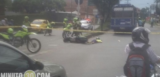 Minuto30.com – En la vía que comunica a San Antonio de Prado con Itagüí, en el sector Ditaires a la altura del semáforo de Santa Ana, una motocicleta colisionó contra un bus de servicio público, ocasionándole la muerte al motociclista. Los hechos se registraron alrededor de las 9:00 am.
