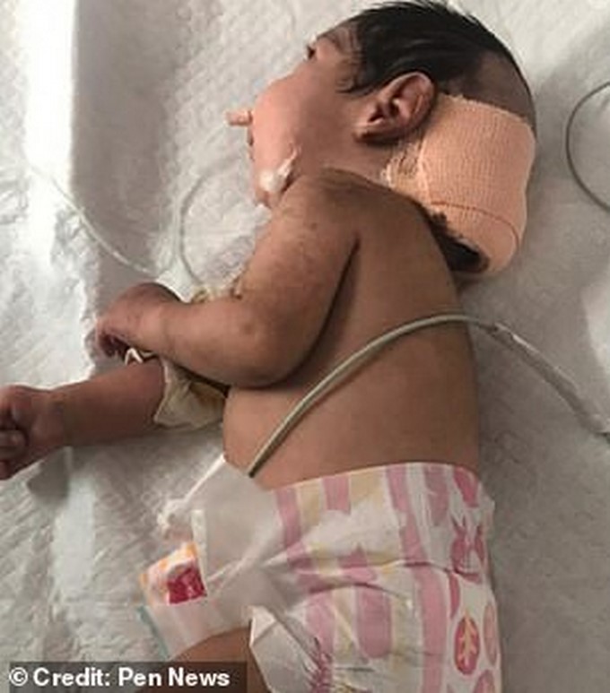 El bebé fue trasladado hasta un centro médico donde cirujanos lo atendieron y detallaron que el niño no tenía dos cabezas. El pequeño tenía una extraña malformación en su cráneo que simulaba una cabeza extra, la anomalía en el cráneo del bebé estaba llena de materia cerebral disfuncional.