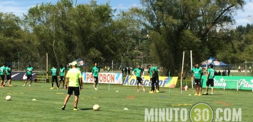 El preparador físico, Jorge Rios lideró la apertura de la práctica, en la que el ‘verde’ busca ponerse a punto de cara al partido de vuelta de los octavos de final de la Copa Libertadores, frente a Emelec.
