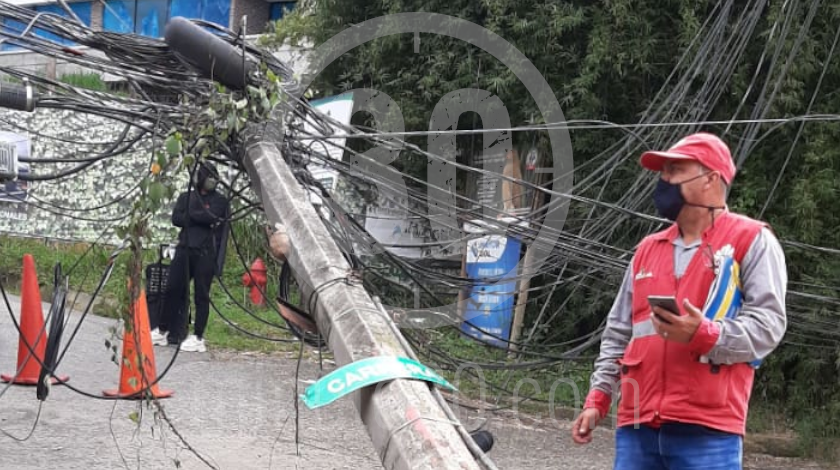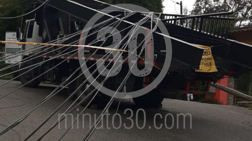 En la zona se registra un cierre en ambos sentidos por cuenta de la caída de dos postes. Al parecer, el hecho habría sido provocado por un vehículo de carga que circulaba por la zona.