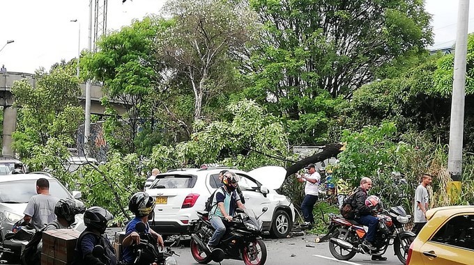 Según el reporte, un árbol de gran tamaño cayó sobre tres vehículos que se movilizaban por la vía.
