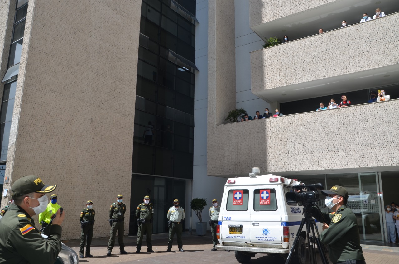 “Estamos orgullosos de todos ustedes: de cada trabajador de la salud que, sin dudarlo, pone en riesgo su vida para cuidar al pueblo Antioqueño, como cumplimiento de la ética que los caracteriza. De cada médico, enfermera, tecnólogo y de todos los que día a día, contribuyen de manera efectiva al bienestar de todos los ciudadanos.” Expresaron los integrantes de la Policía Antioquia.