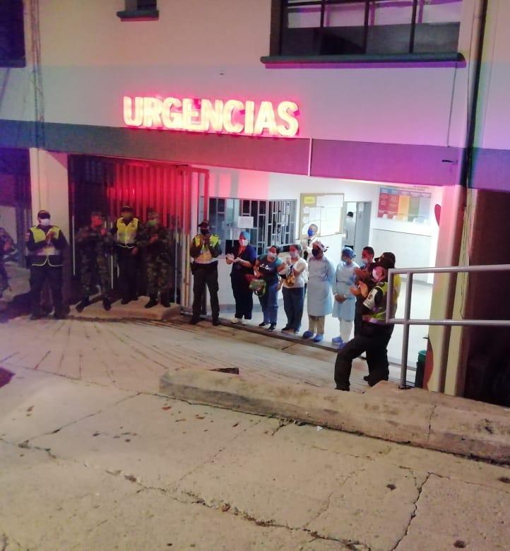 Las unidades policiales que integran el Modelo Nacional de Vigilancia Comunitaria por Cuadrantes de cada municipio se instalaron con sus motocicletas y las balizas prendidas en todos los hospitales como símbolo de admiración y respeto por la labor tan importante que cada uno está desempeñando, llevando esperanza y tranquilidad a la ciudadanía ante esta situación que actualmente tiene paralizado el mundo entero donde cada día fallecen gran cantidad de personas por causa del Coronavirus.