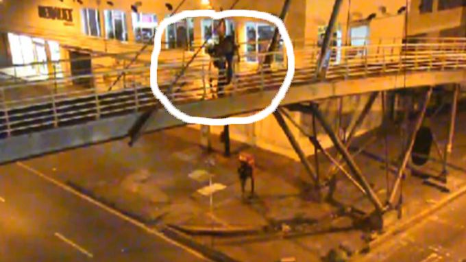 Los hechos se registraron en un puente peatonal ubicado en la carrera 52 con calle 50, donde un joven se encontraba sentado en la baranda al lado izquierdo sentido occidente-oriente con dirección al centro comercial Mayorca. Esta persona pretendía saltar a una tracto camión que transitaba por la autopista sentido norte-sur, lo cual fue evitado por uno de los uniformados que de manera sigilosa se desplaza por encima del puente hacía donde se encontraba el ciudadano, mientras el otro policial lo entretiene desde la vía.