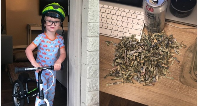 Tras buscarlo por toda la casa, descubrieron que el pequeño decidió “jugar” y meter uno a uno los billetes por la trituradora.