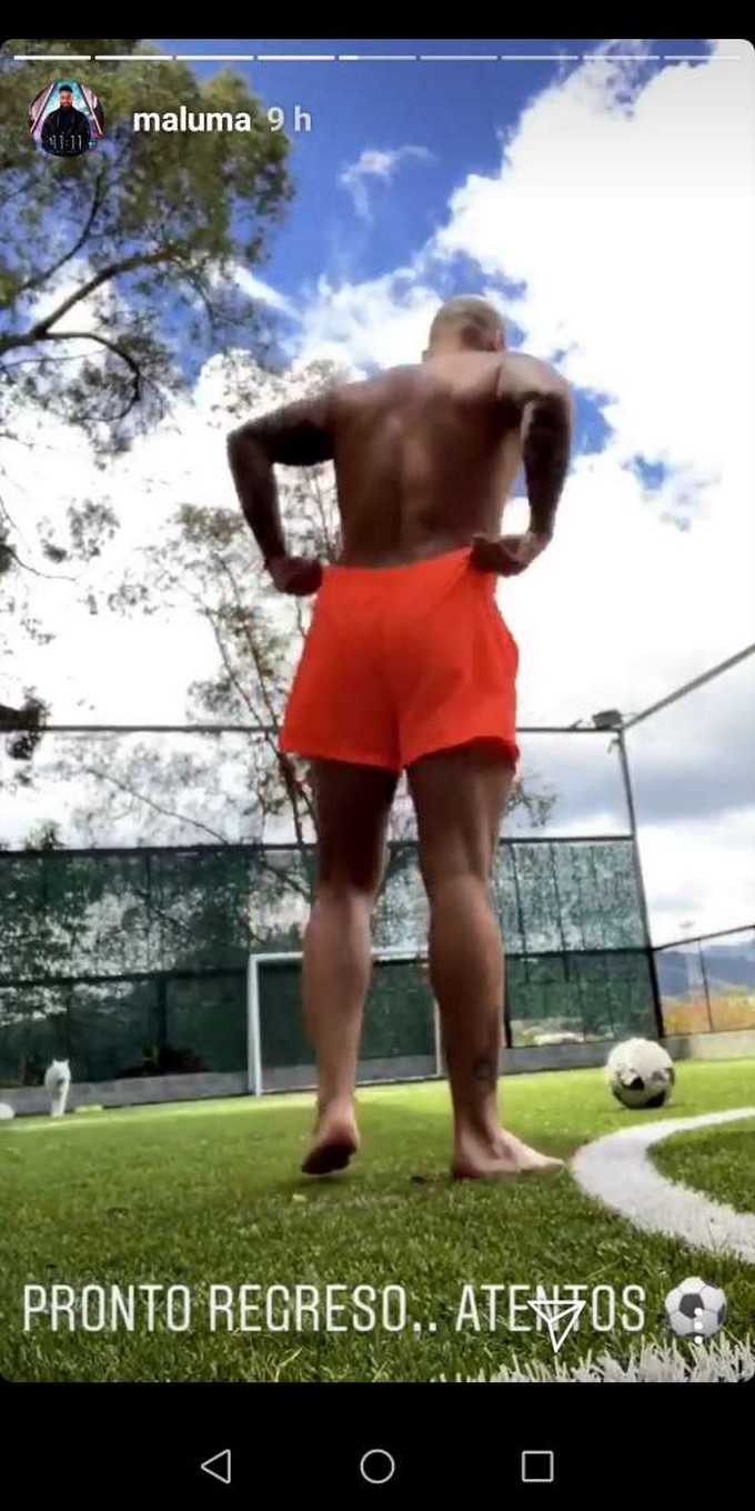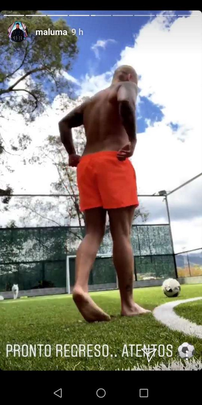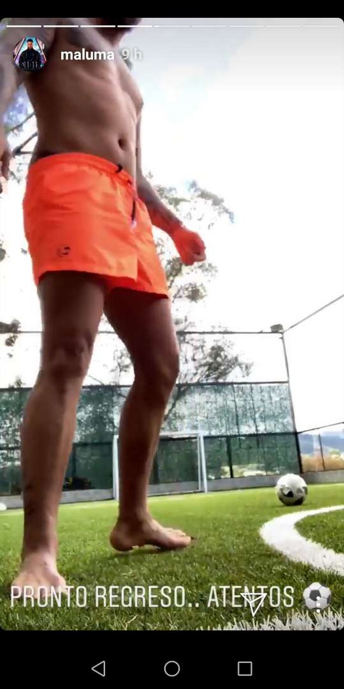 El paisa ha publicado un video donde se le ve jugando fútbol con una pantaloneta color anaranjado, en el cual patea un balón con dirección al arco con un pequeño mensaje, “pronto regreso… Atentos” . Uno de sus viejos amigos reveló hace varios meses que Maluma “hubiera elegido jugar al fútbol, sería profesional”, según Juan Fernando Quintero.