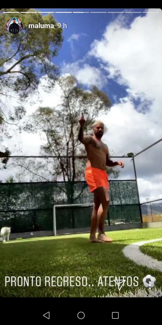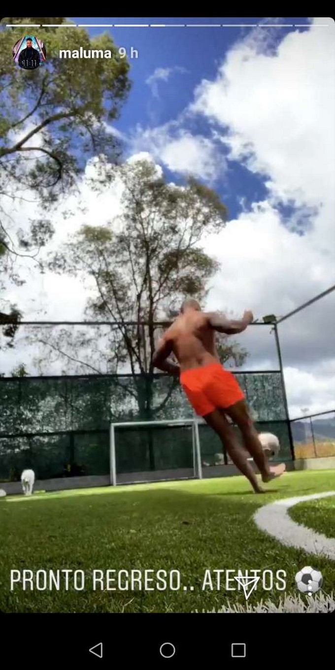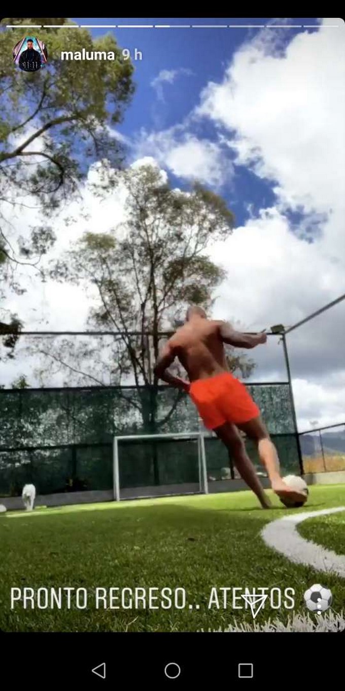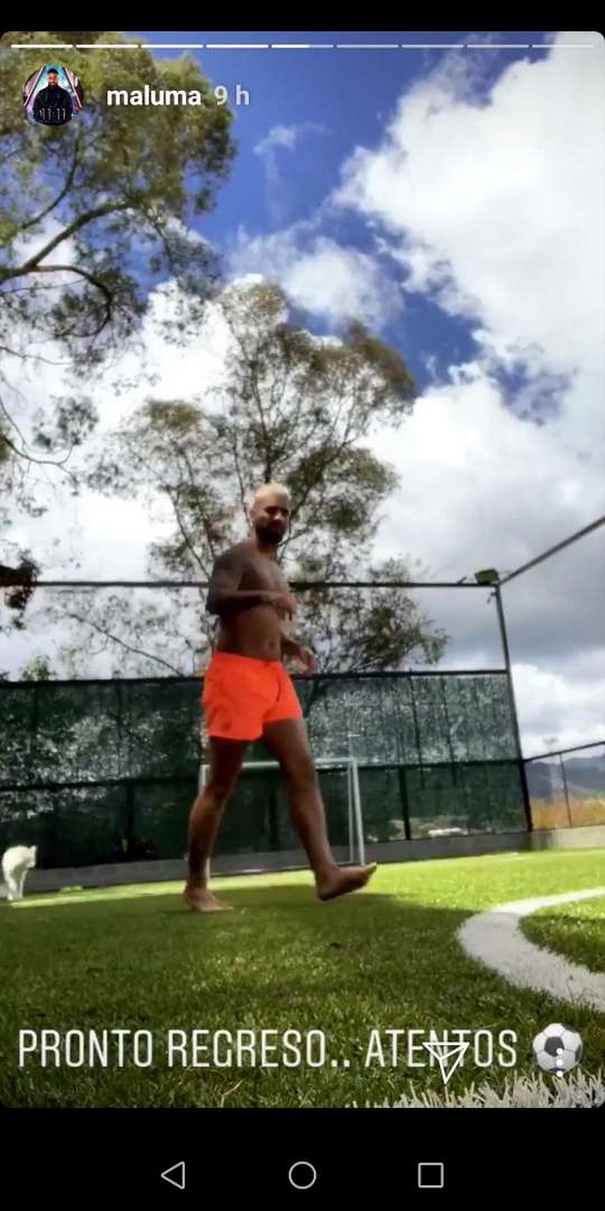 El paisa ha publicado un video donde se le ve jugando fútbol con una pantaloneta color anaranjado, en el cual patea un balón con dirección al arco con un pequeño mensaje, “pronto regreso… Atentos” . Uno de sus viejos amigos reveló hace varios meses que Maluma “hubiera elegido jugar al fútbol, sería profesional”, según Juan Fernando Quintero.