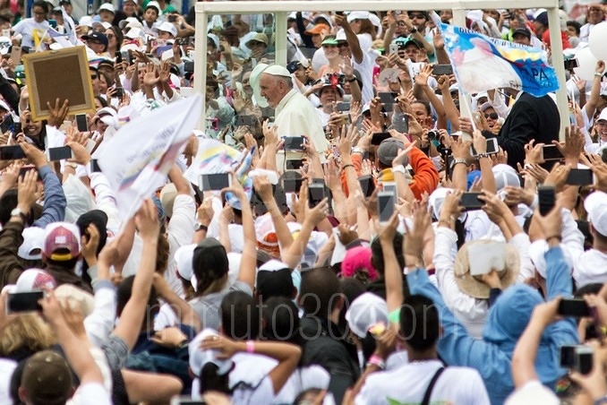“Quiero agradecer a quienes bajo la lluvia tuvieron que esperar porque hubo un retraso. Gracias por la paciencia, por su perseverancia y su coraje, y como todos somos pecadores pidamos perdón”, fue el mensaje inicial del papa para todos los feligreses.