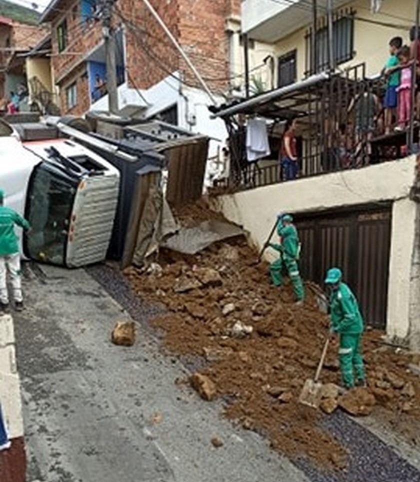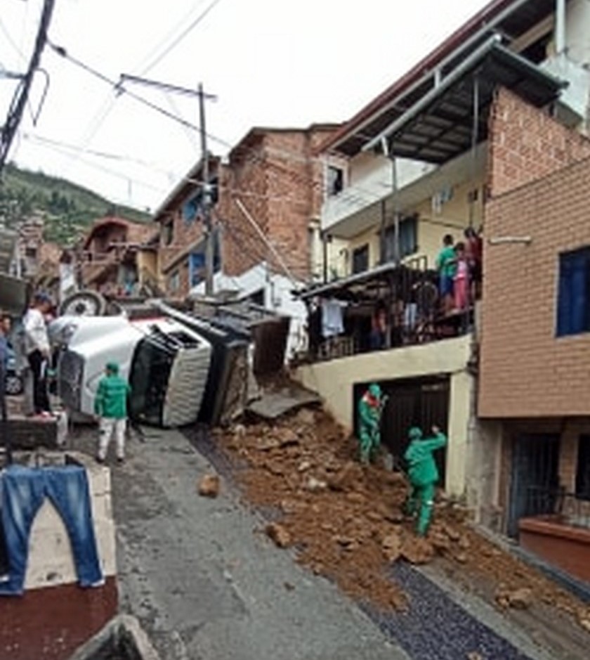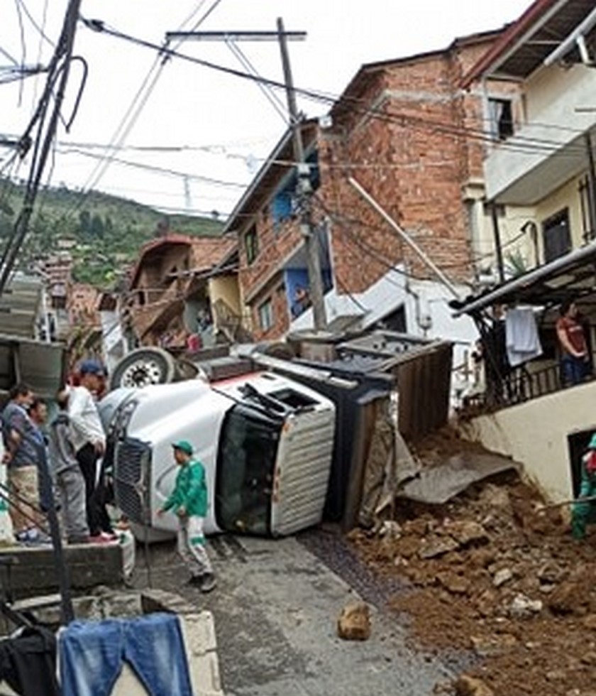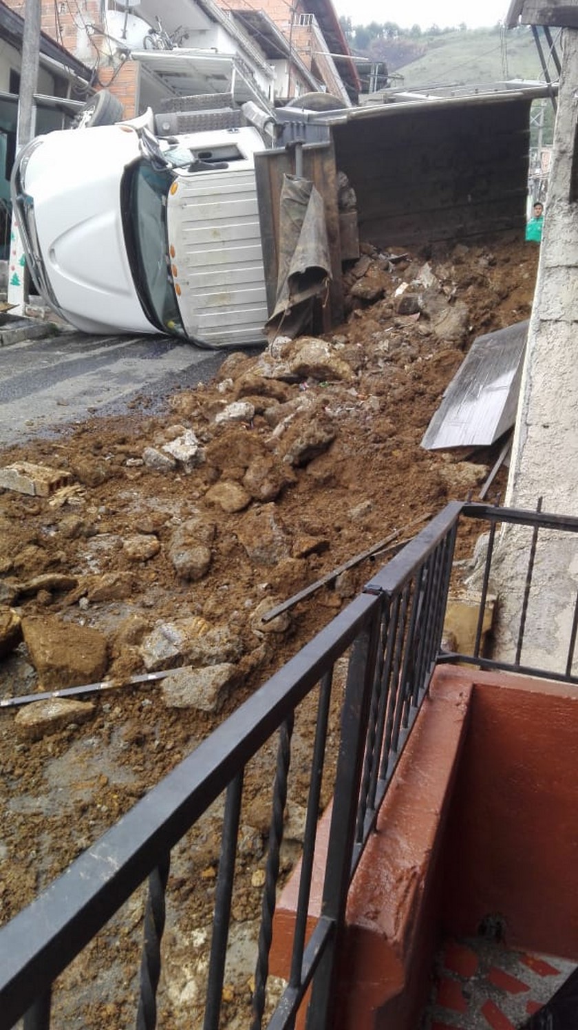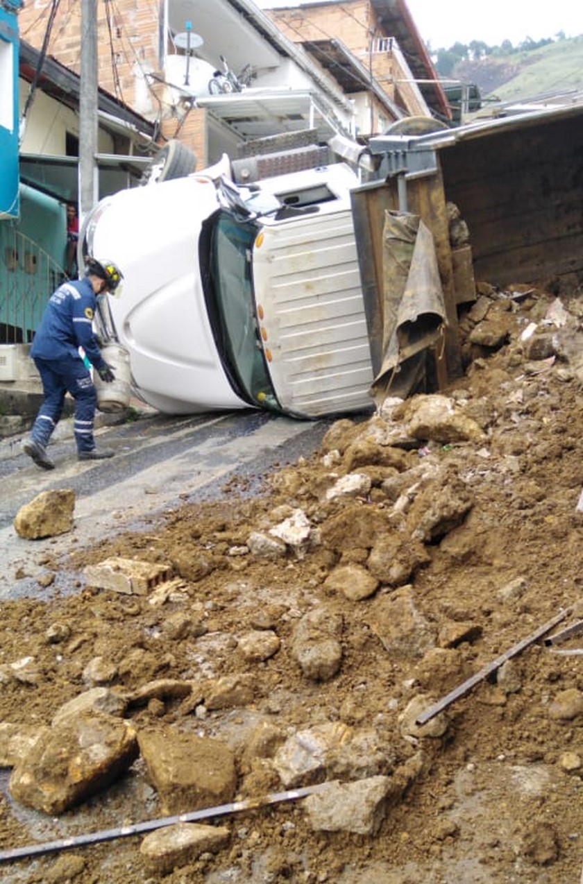Según la ciudadanía, un vehículo de carga que estaba cargado con escombros terminó volcado en medio de la vía.