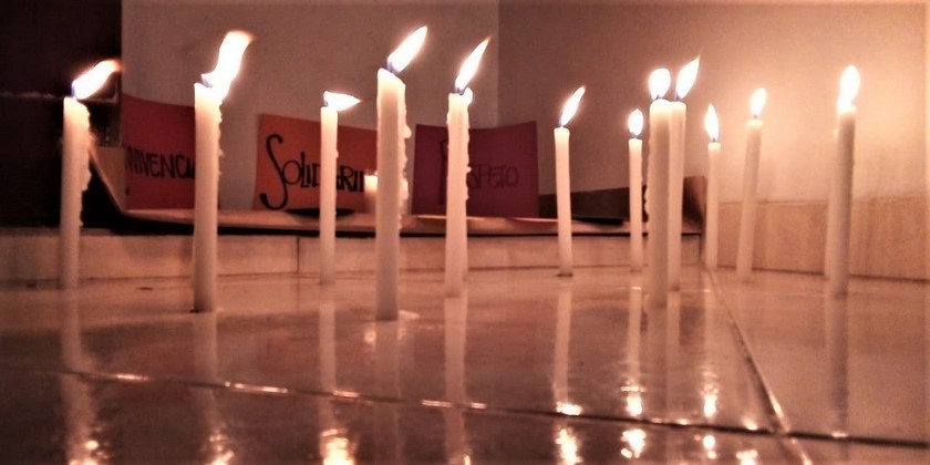 Debido a la restricción de actos públicos por la pandemia del covid-19, Ángela Moreno Salazar, una de las líderes y defensora de derechos humanos más reconocidas de este municipio antioqueño, encendió 15 velas junto a igual número de siluetas humanas de papel tomadas de las manos para traer a la memoria a los 15 hombres asesinados. Entre ellos a su hermano, Francisco Luis Moreno Salazar.