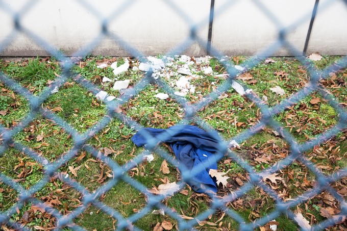 Vista de una chaqueta azul junto a una valla de la prisión de Ploetzensee, de la que escaparon cuatro presidiarios