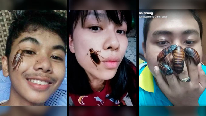 Se trata de #CockroachChallenge, el cual consiste en tomar una cucaracha- obviamente viva- y tomarse una selfie con ella en la cara.