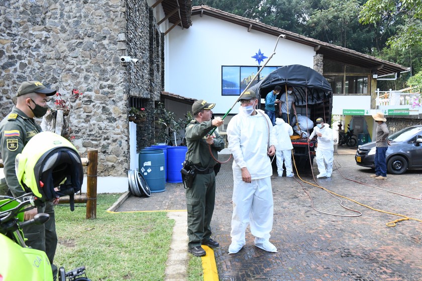La Policía Metropolitana del Valle de Aburrá en articulación con el Ejército Nacional y el apoyo de la empresa Salvar vidas ya, realizan la desinfección de vías públicas, parques, fachadas, andenes, entre otras áreas comunes, de la ciudad de Medellín y los demás municipios del área Metropolitana.