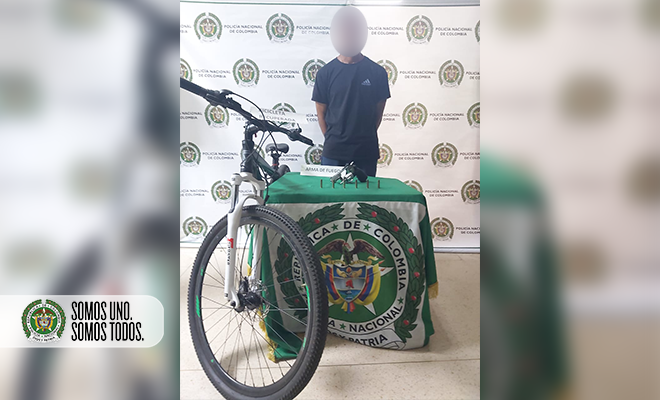 También, mediante labores de patrullaje, el cuadrante fue informado por la ciudadanía que por el sector del primer parque del barrio Laureles de Medellín, se movilizaba una persona en una bicicleta que acababa de hurtar mediante intimidación con arma de fuego. De inmediato los efectivos policiales siguen a este sujeto a quien dieron alcancé, logrando recuperar la bicicleta, avaluada en $1’200.000, y luego de la requisa al hombre de 19 años de edad se le incautó un arma de fuego tipo revólver con 06 cartuchos para el mismo.