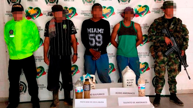 Tras una operación de asalto llegaron hasta la vereda La Solita del municipio de Valdivia, Antioquia, donde fueron destruidos un total de 4 laboratorios para la extracción de base de cocaína, donde fueron capturados tres hombres, además fueron incautados y destruidos los siguientes elementos: