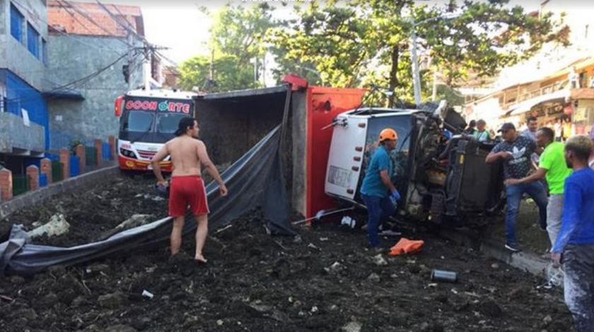 Al parecer volqueta se quedo sin frenos.@minuto30com @NCAntioquia @RedMasNoticias pic.twitter.com/Q8OI5aiPNM— Guardianes Antioquia (@Guardianes_Ant) January 10, 2020