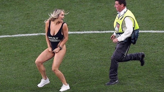 Ese pastelito que invadió la cancha de la #UCLfinal se llama Kinsey Wolanski pic.twitter.com/SgBWbNzo8b