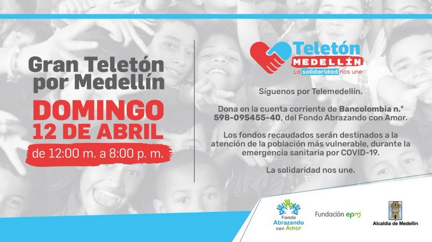 La #DonatónPorMedellín liderada por el Alcalde Daniel Quintero tendrá transmisión por Telemedellín a partir de las 12 del día.