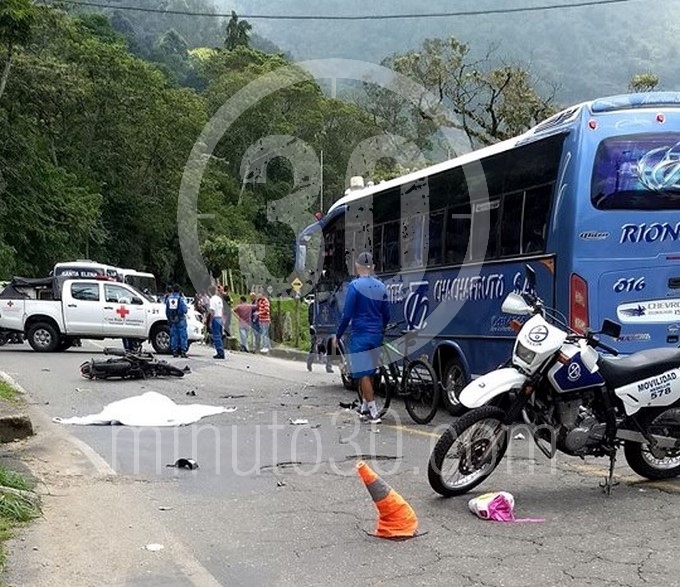 Al parecer, un joven entre unos 20 y 25 años de edad, que se movilizaba en un motociclista impactó contra un bus del municipio de Rionegro, Antioquia, y falleció en el lugar de los hechos.