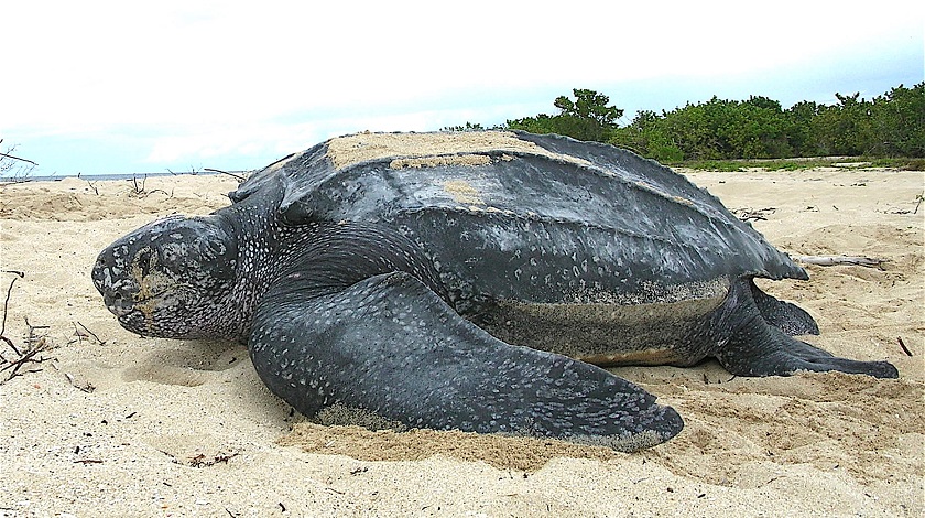 Esta especie de tortugas marinas puede medir hasta dos metros y puede pesar hasta 600 kilos. En países como Estados Unidos es considerada una especie en peligo.