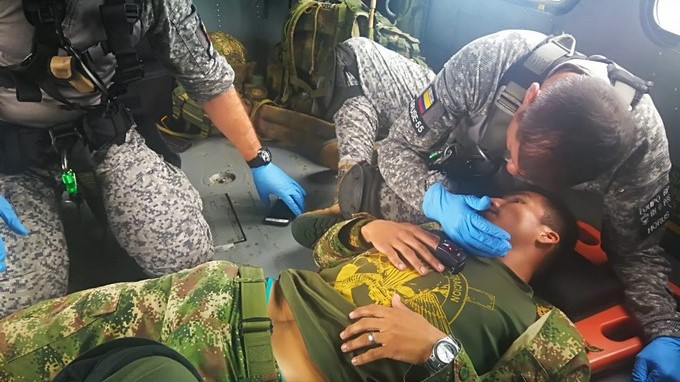 La Fuerza Aérea Colombiana realizó la evacuación aeromédica de un soldado perteneciente al Ejército Nacional, quien presentaba convulsiones debido a fiebre alta con origen desconocido.