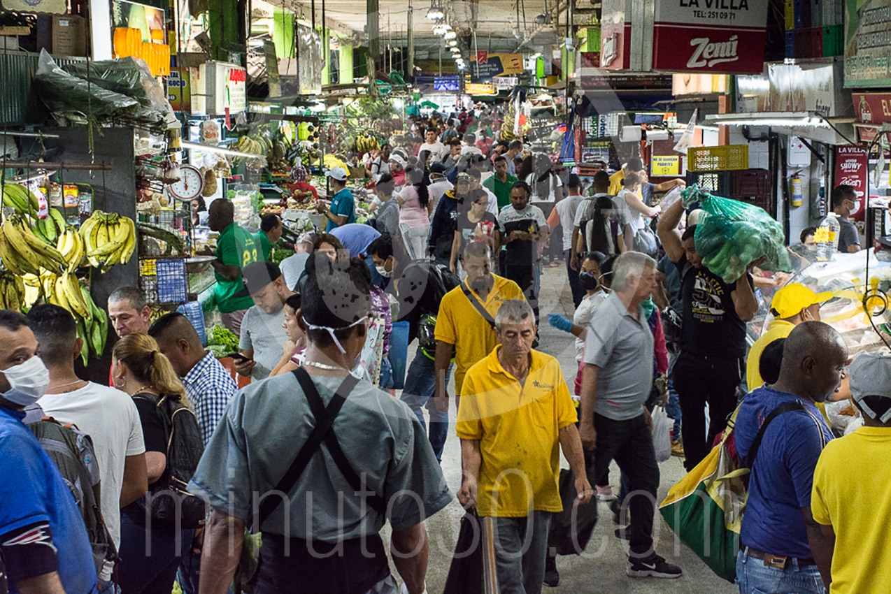 Por otro lado, vemos la Plaza Minorista, la central de abastos de Medellín, con una afluencia casi normal, todo por la gran cantidad de personas comprando sus productos para la cuarentena obligatoria dispuesta por el Gobierno Nacional.