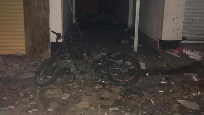 Según información preliminar, la moto bomba estalló muy cerca a la estación de Policía de este municipio. El ataque se presentó en una zona comercial, cerca al parque central, a la Alcaldía y a dos casas de la estación de Policía.