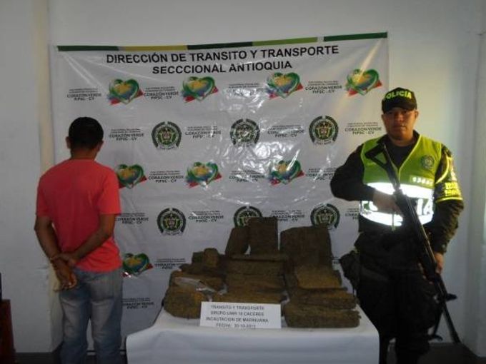 Minuto30.com .- En la vía Tarazá – Caucasia Policía capturó a un hombre que se movilizaba en un bus y lleva consigo 20 mil gramos de marihuana.