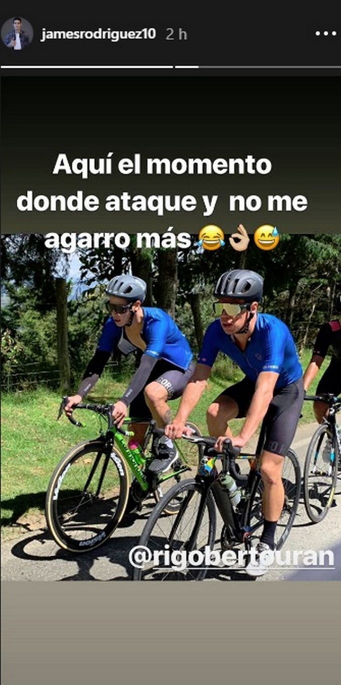 Los dos colombianos también aprovecharon para disfrutar de un buen entrenamiento en bicicleta a lo que James Rodríguez publicó en su cuenta de Instagram “Con un grande, un placer compartir con vos, aunque no me agarraste el ritmo en la bici”.