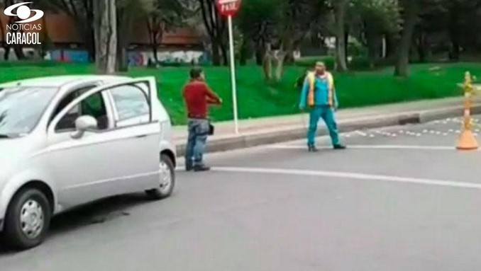 En diálogo con Noticias Caracol, Pedro Díaz contó lo ocurrido. “Él viene (el conductor del automóvil) y le doy pito que coja el desvío, y él nada, me frena, me hace una maniobra con la mano de grosería, arranca, le brinco adelante, me dice que si me voy a hacer matar y empieza a apuntarme con un arma de fuego. Le da vuelta al carro, se baja y me dispara hacia el lado derecho para que soltara la varilla que tenía”.