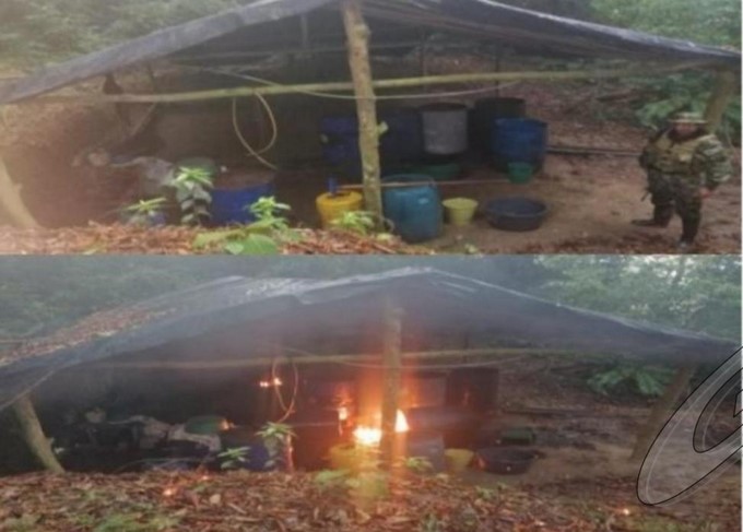 Como resultado fueron incautados 35 kilos de pasta base de coca, 400 kilos de hoja de coca, 156 galones de acpm, 200 galones de gasolina, entre otros insumos para el procesamiento del alcaloide.