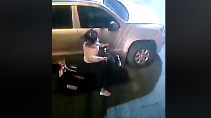 En el clip que se ha difundido en redes sociales se ve como la mujer que se moviliza en una motocicleta se estaciona al lado de un vehículo tipo camioneta y espera el momento exacto para cometer el robo.