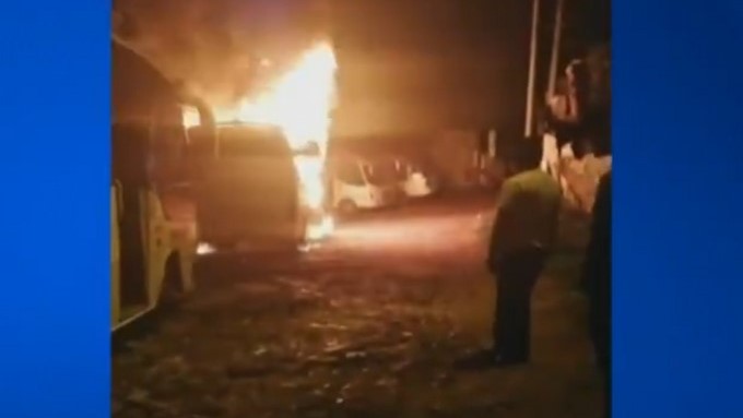 EN VIDEO: A las afueras de La Picota incineraron un bus, al parecer, en medio de protestas por demora en salida de Santrich