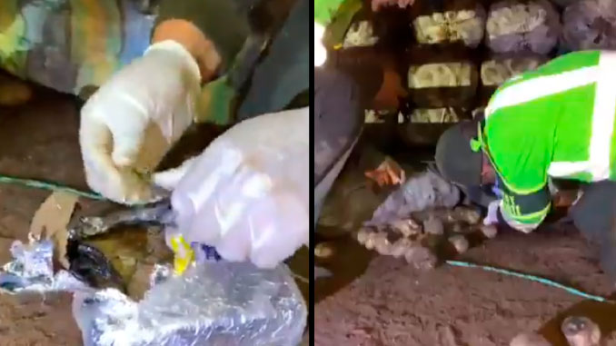 Estos alimentos tenían un fondo falso donde estaban ocultos paquetes de droga que fueron registrados por los agentes antinarcóticos y se encontraron varias pacas de lo que aparentemente se identificó como marihuana.